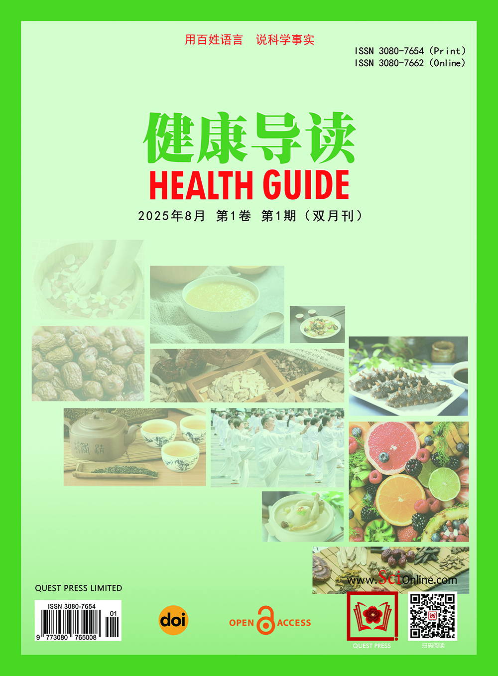 Health Guide is an international, peer-reviewed journal dedicated to the popularization of health sciences, published by Quest Press Limited under the Gold Open Access model. Published bimonthly in Chinese, the journal is committed to translating rigorous medical and public health research into trustworthy, accessible scientific information for the public, building a crucial bridge between professional medicine and public health literacy. All articles are immediately and permanently freely available online upon publication, upholding the principle of knowledge equity and contributing to the enhancement of public health literacy.